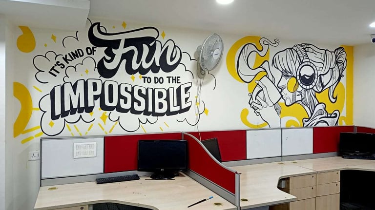 Creative office wall murals in Delhi that enhance workspace and brand identity.